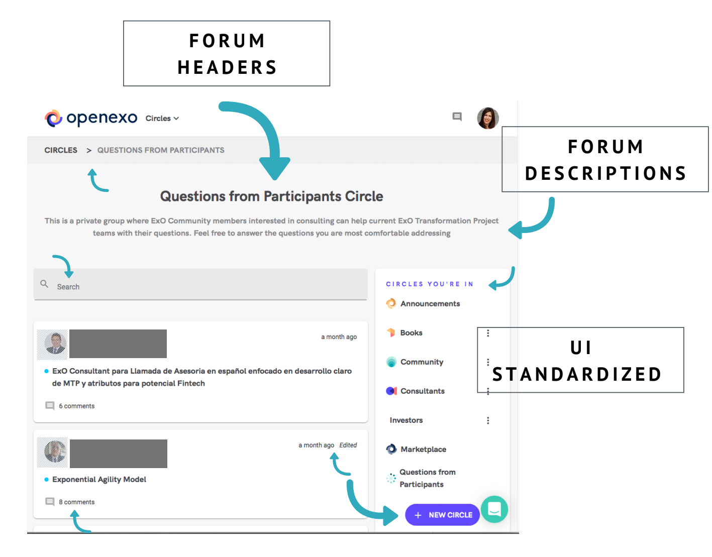 My first project was to untangle years of copy debt in the digital platform. The platform had multiple portals and permissions for different users and offered forums, innovation team workspaces, a multimedia library and eventually public profiles, certification badges and a marketplace.