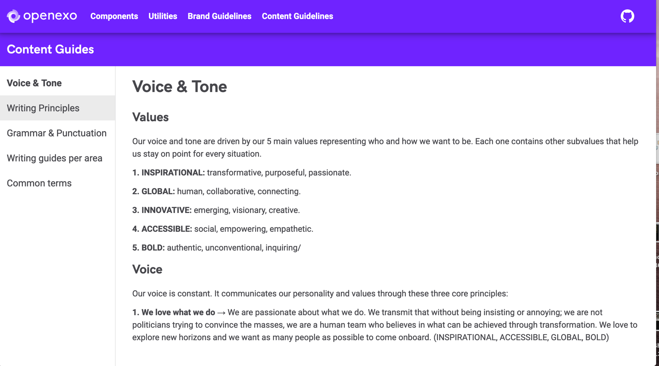 In my days as the lone-writer I had started a source-of-truth terminology glossary and platform copy design docs with screen flows sourced through a developer-side sandbox. We grew these to guide and support use of consistent brand voice and terminology.