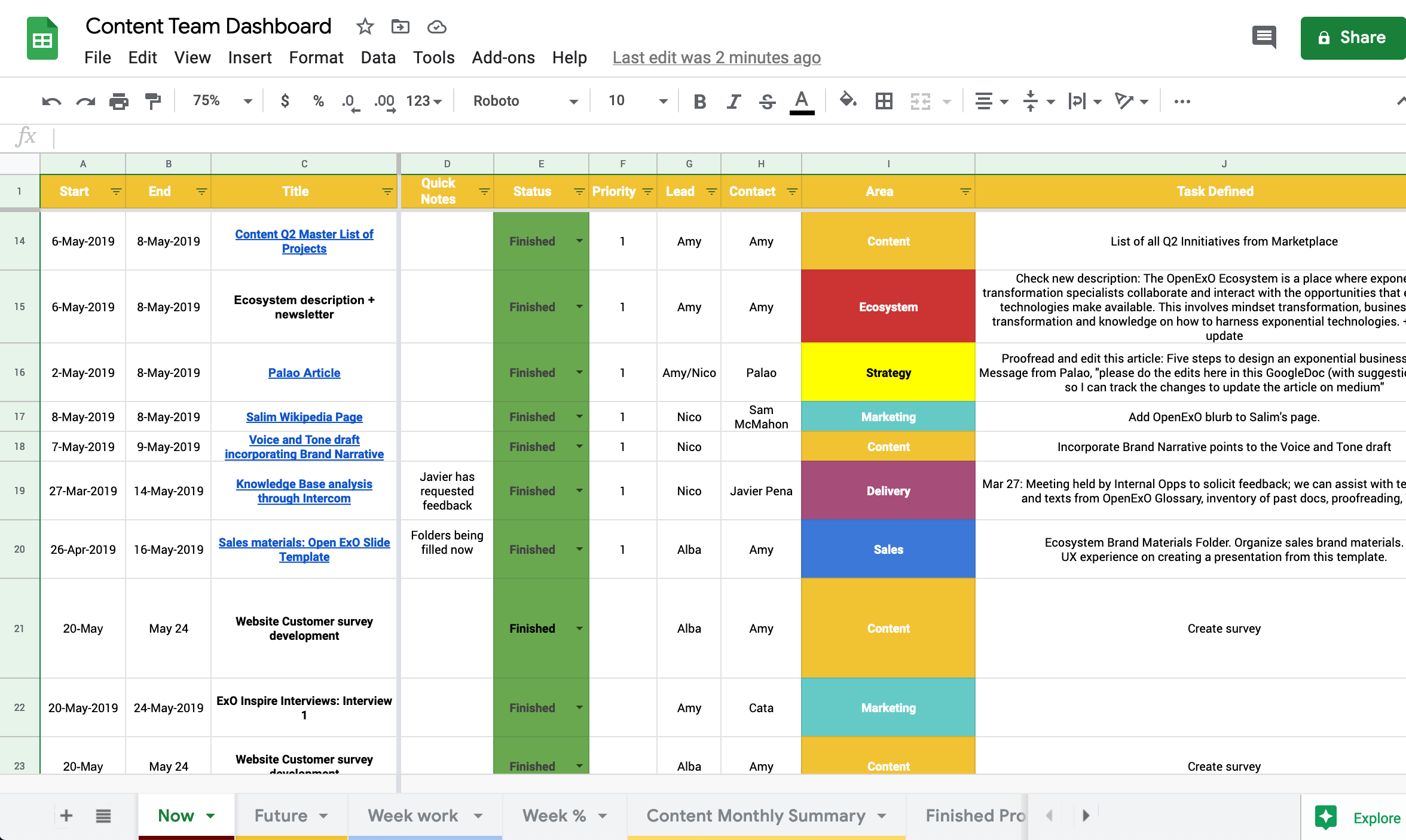 I depended on business strategy and operations to coordinate with the entire team the TOP priorities and then made decisions on quality and scope from there. I created transparent practices so that anyone on the team could easily find out what we were working on during any given week and what percentage of our work was dedicated to the different projects. I didn’t always make everyone happy, but as a team we did a great job of producing a lot of useful copy and content focused on business and client needs.
