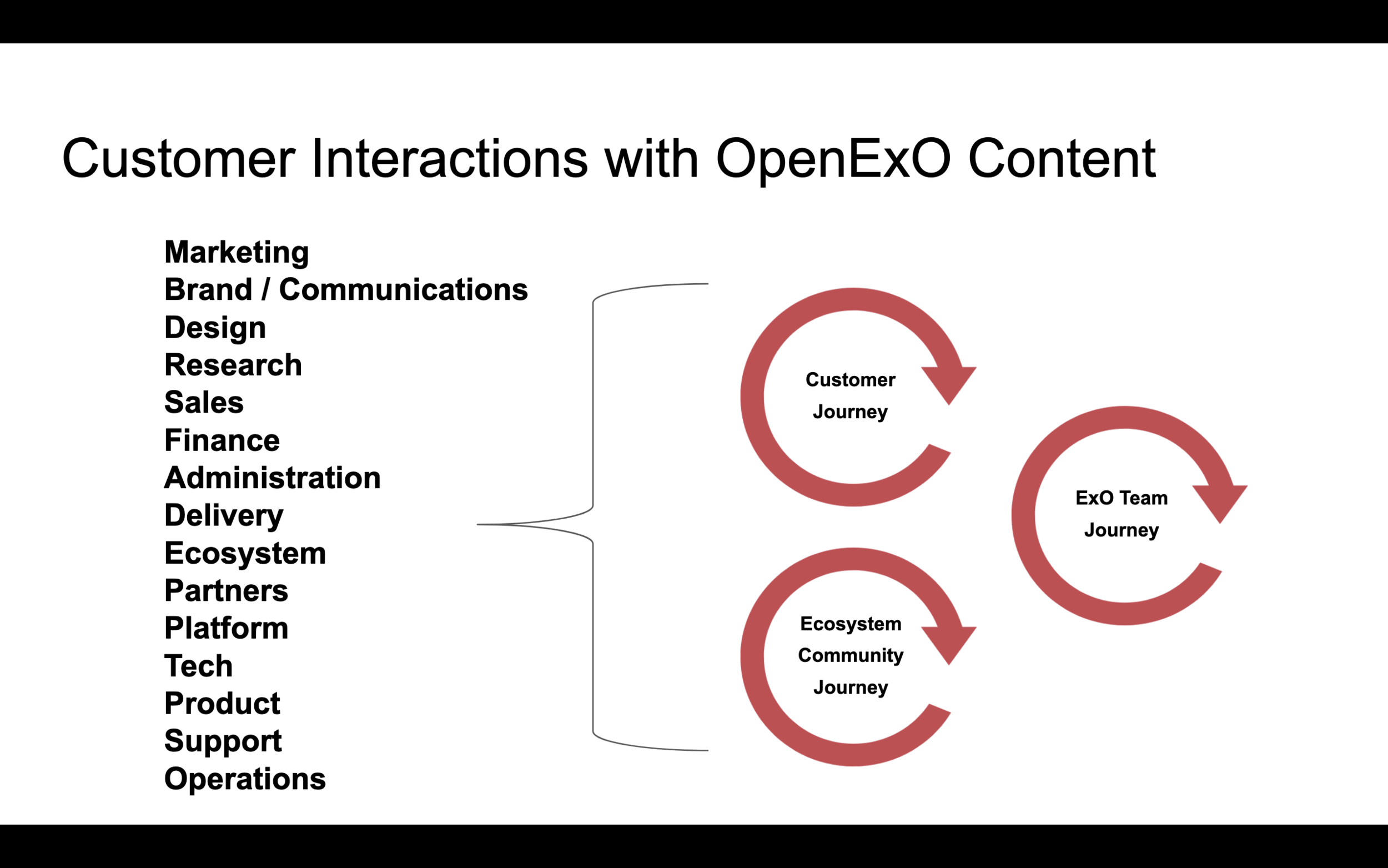 I joined OpenExO when it was a tight-knit startup called ExO Lever. I worked with innovation and technology community members and internally on cross-disciplinary teams made up of C-suite stakeholders, product managers, developers, designers, researchers, and the operations, delivery, marketing, sales, legal and accounting areas.
