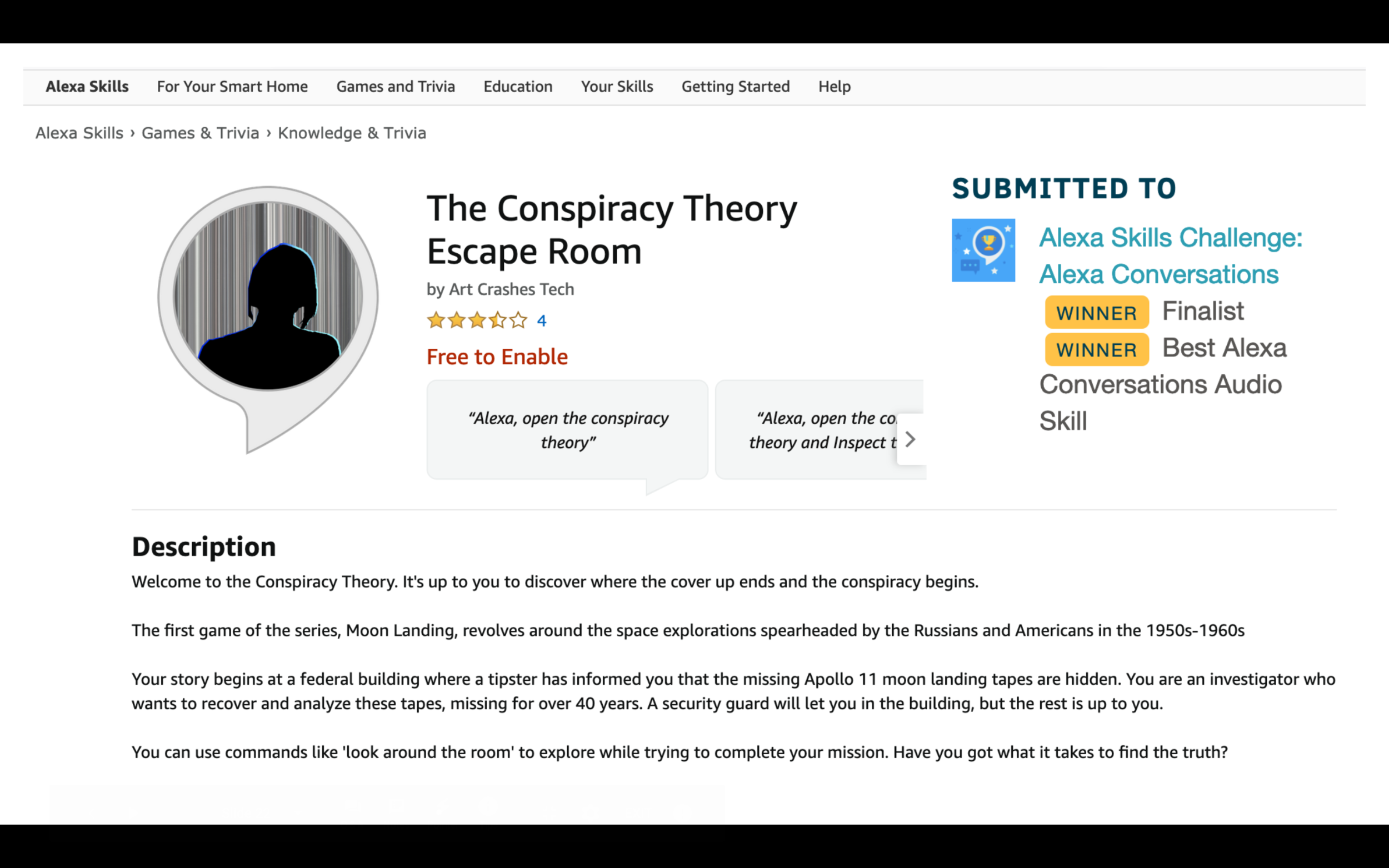 Amazon selected our game for Best Alexa Conversations Audio Skill.