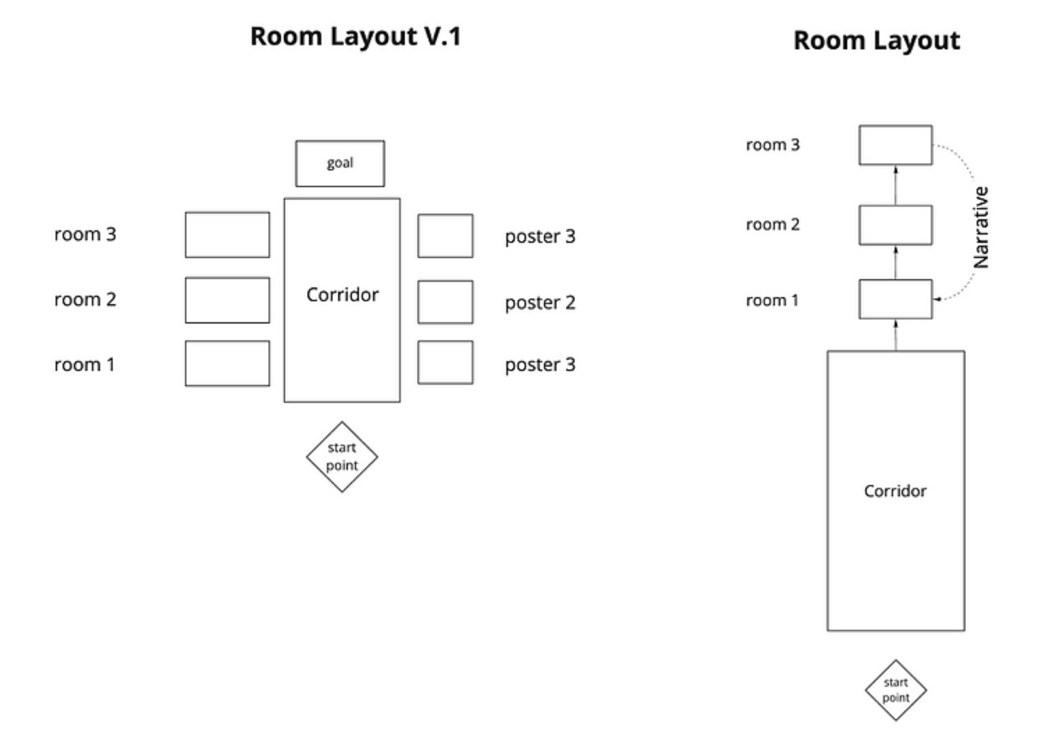 The game also went on a series of diets to reduce complexity and difficulty. Our multi-room game became a corridor funnel, we eliminated inventories, and ultimately produced a sizzle reel first installment.